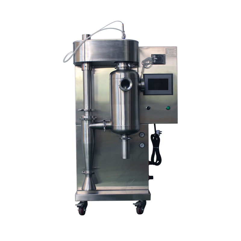 Miniature experimental micro spray dryer(spray dryer / spray dryer) and its main application in the laboratories of universities, research institutes and food pharmaceutical and chemical enterprises to produce micro particle powder, which is widely applicable to all solutions such as emulsions and suspensions, and is suitable for drying of heat sensitive substances, such as biological products, biological pesticides, enzyme preparations, etc. The material is heated only when it is sprayed into foggy particles, so it is only instantaneously heated to keep the active ingredients of these materials intact after drying.