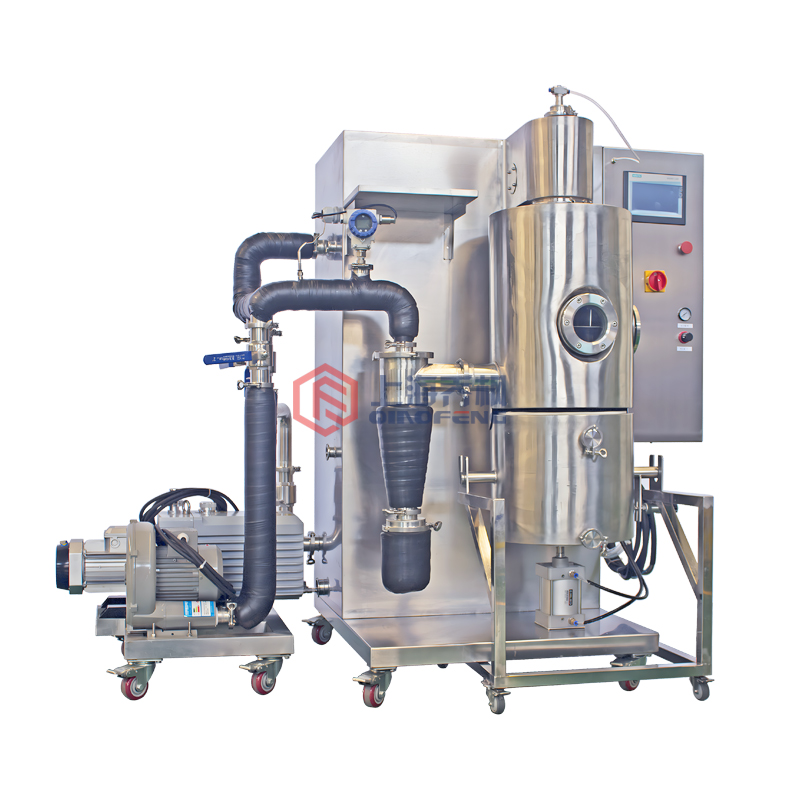 實驗室冷凍噴霧干燥機適用于熱敏性、粘稠性、活性物料及含糖量高的物料的低溫干燥,如中草藥天然產物提取液、乳制品、生物制劑、酶制劑、水果原汁、高分子材料等。