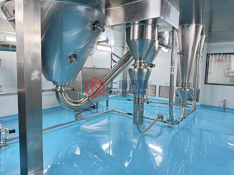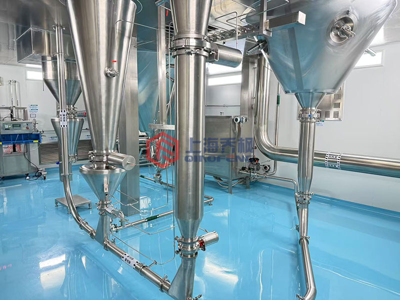低溫熱風與霧化液滴在干燥室內充分接觸,溶劑快速蒸發,而物料始終處于低溫環境。