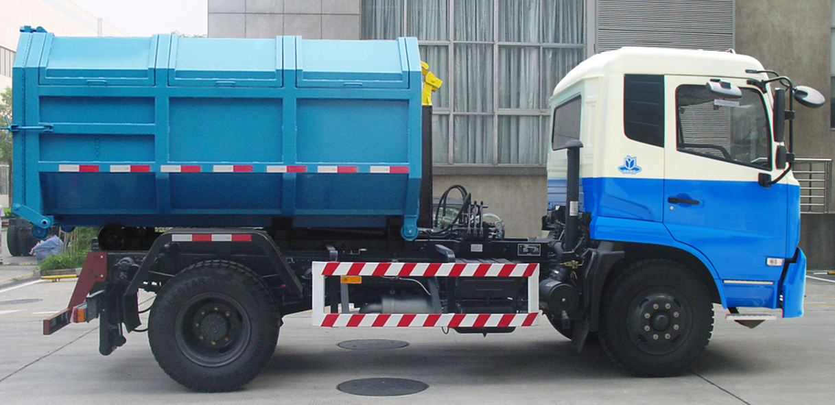 CGJ5122ZXX/CGJ5122ZXXE5型車廂可卸式垃圾車是收集居民小區(qū)、街道等處的城市生活垃圾并將其送往垃圾中轉(zhuǎn)站或?qū)⒗修D(zhuǎn)站箱體運(yùn)至垃圾處理場(chǎng)的專用車輛。